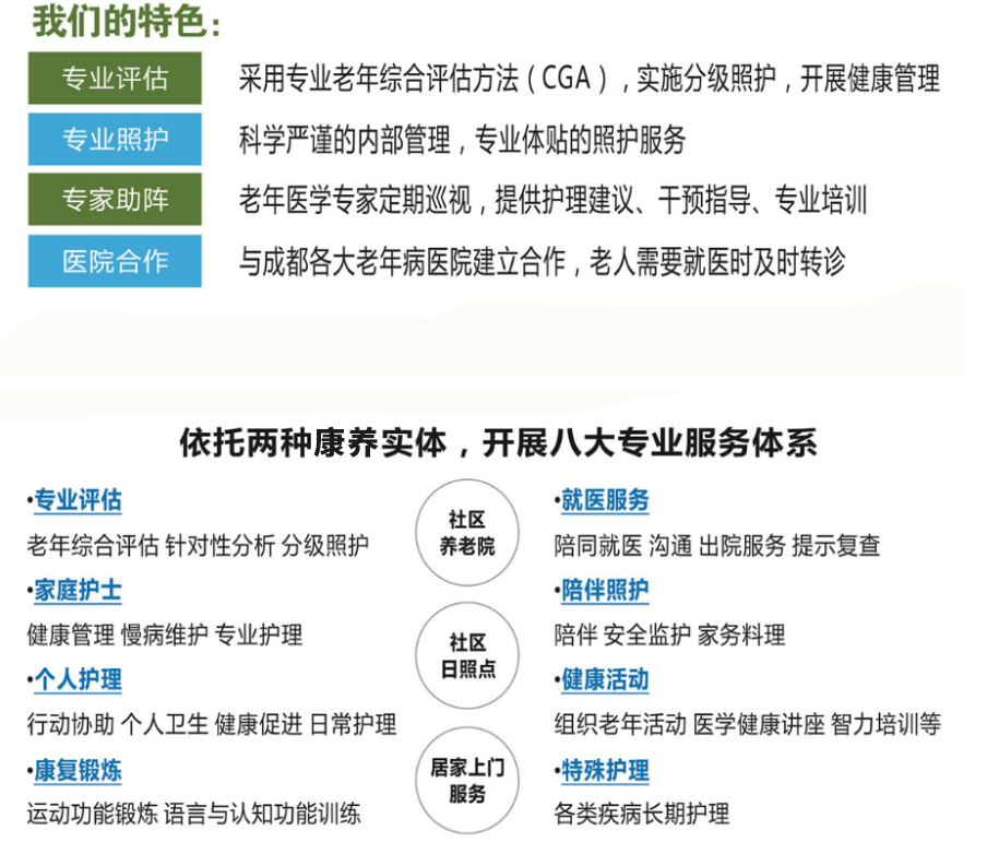 成都怡倍康養(yǎng)老服務有限公司是一家按照“康養(yǎng)結(jié)合”模式運營的專業(yè)化養(yǎng)老機構(gòu)。我們與四川大學華西醫(yī)院老年醫(yī)學中心合作,專注于社區(qū)養(yǎng)老,并在實踐中堅持關(guān)注老年人身心健康。